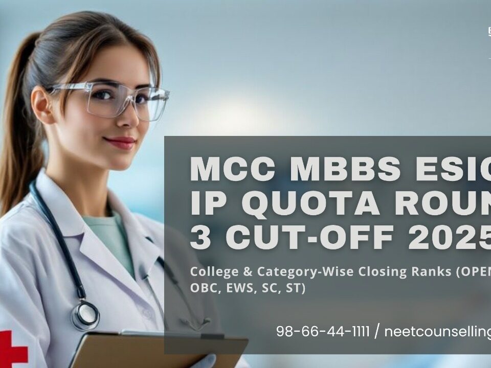 MCC MBBS ESIC IP Quota Round 3 Cut-Off 2025 – College & Category-Wise Closing Ranks (OPEN, OBC, EWS, SC, ST)